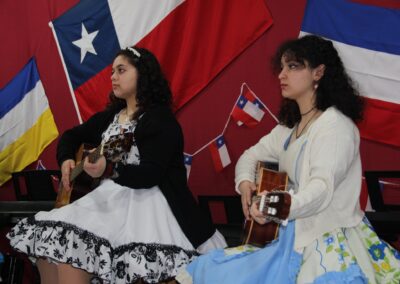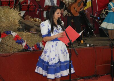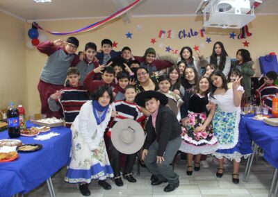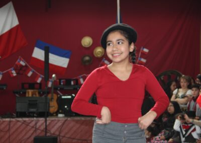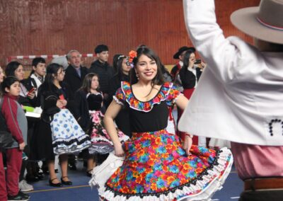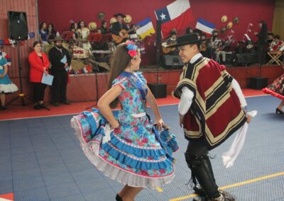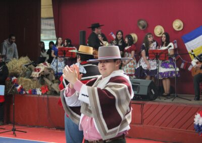Claramente, nuestro baile nacional “La Cueca”. No quiso estar ausente de estas celebraciones, por lo que La Academia de Canto de nuestro colegio, nos interpretó las dos mejores canciones de cuecas de su reportorio, así también la asignatura de Interpretación Musical de 3ros medios, nos presentó un pie de cueca con arreglos musicales y vocales por los mismos estudiantes.