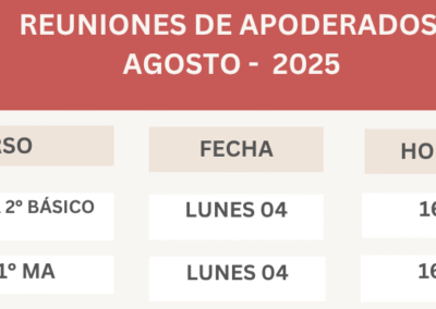 Junto con saludar, se informa que la próxima semana se realizarán las reuniones de apoderados, en la sala de cada curso, según fecha y hora que se señalan a continuación.