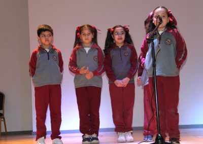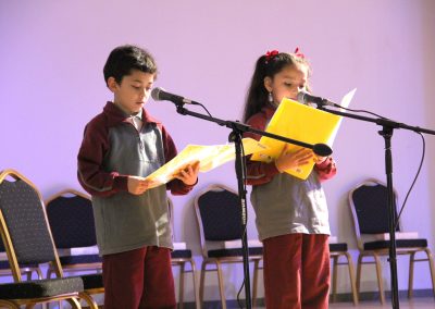 Los 2° básicos demostraron su dominio del lenguaje a través de diversas actividades que incluyeron rimas, pronunciación y comunicación fluida. Presentaron brindis y payas, y para mejorar su agilidad verbal y dicción, participaron en el desafío de los trabalenguas. Estas actividades les permitieron perfeccionar su pronunciación y agilidad mental. Además, recitaron poemas y presentaron diálogos, los cuales fueron una parte esencial de la muestra.